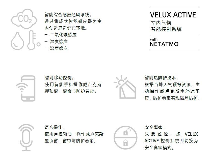VELUX ACTIVE室内智能控制系统,5大控制模式一键改善室内环境,荣获2018 IBS(美国建筑材料展)最佳产品大奖。
