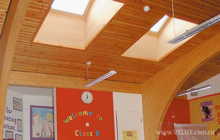 在学校的设计构思中,有两个性能是最令孩子和员工们满意的,那就是自然采光和超保温。每间教室都被设置了威卢克斯屋顶窗,这样可以使孩子们沐浴在日光之中;学校大部分空间都可以享受到自然光照,甚至在灰暗的阴雨天里,都没有必要使用电灯,从而大大节省了电费。校长介绍说,节省这笔电费便相当于一个兼职教师的薪资,采用自然采光和通风设计以及威卢克斯屋顶窗产品的应用,不仅为孩子们带来的充满阳光与新鲜空气良好的学习环境,更给学校带来了极大的实效性和经济利益。