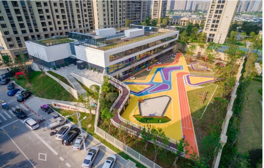 不同功能分区的组团被有序连接成整体,形成有趣且具有连续性的活动空间。有效的引导孩子们锻炼身体,同时增加孩子们之间的交往机会,提高其社交能力。