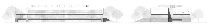 为了解决临街道路的问题,设计师将幼儿园的入口设置在了2楼,并设计了一些独特的建筑小品,这样做一方面建立了独特的校园文化空间和城市景观节点,将幼儿园入口空间开放给城市,形成一个可供孩子和家长停留、休息和等待的空间;另一方面高差处理也加强了幼儿园建筑与城市道路的距离感,形成幼儿园外部的安全的活动场地。