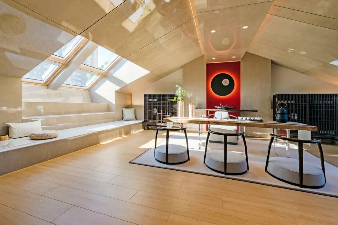 华贸·铂金墅室内顶层非常高挑,SWS GROUP设计团队设计师徐峰将上层空间进行分隔,巧妙地打造了一个“第五空间”-Active阁楼。
