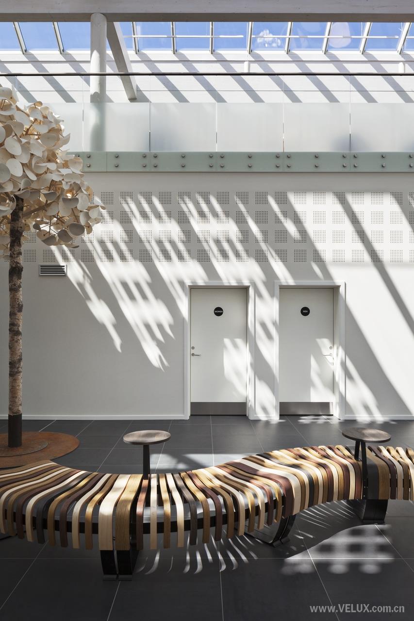 建筑物的设计缔造了一个沐浴日光、照明均匀的舒适空间。采光设计与自然理念息息相关,旨在提高居住者的健康和福祉。