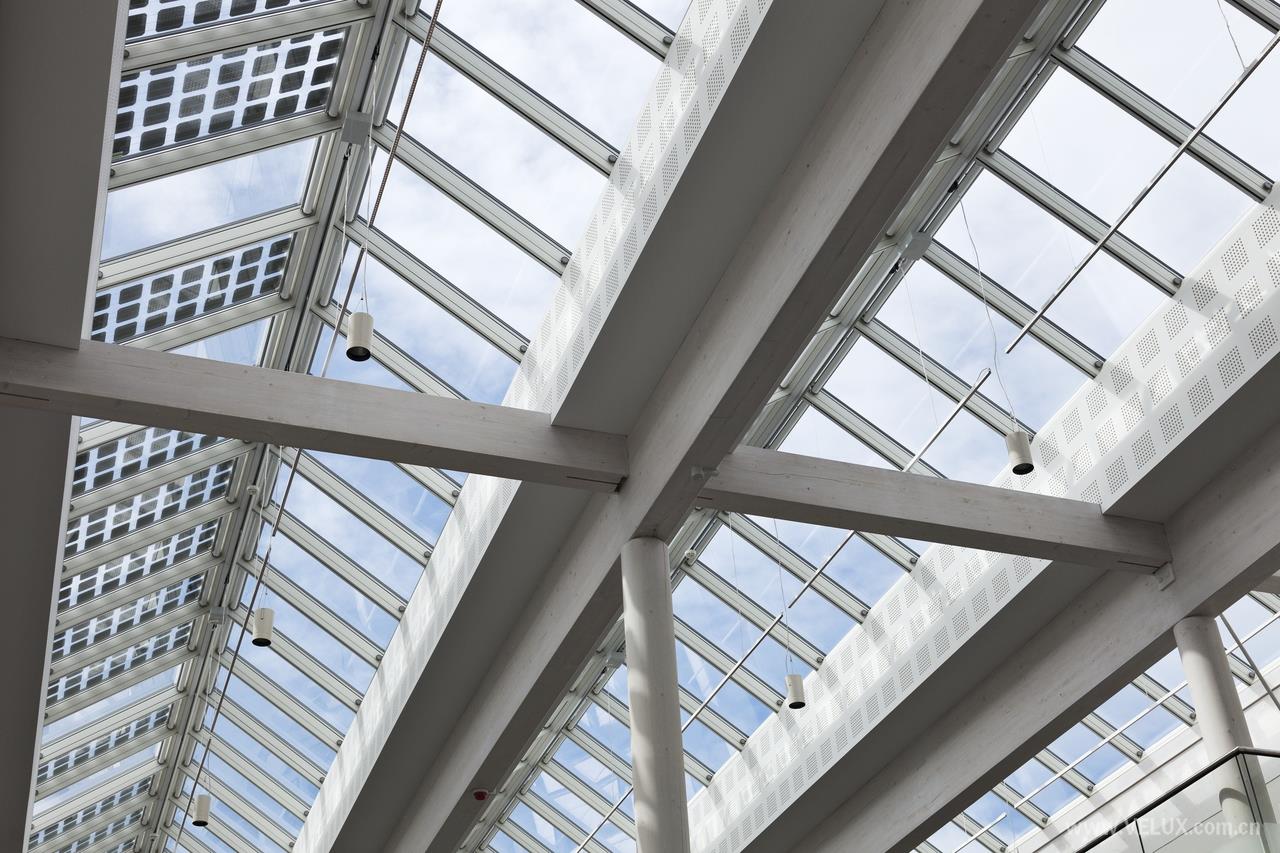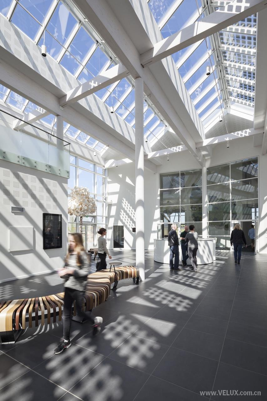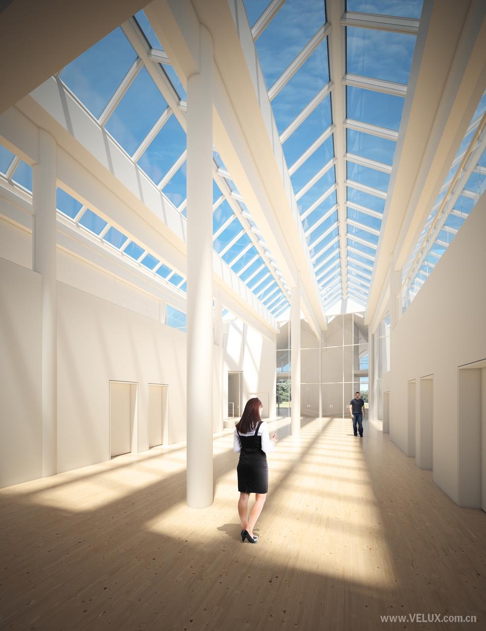 酒店屋面四组人字坡威卢克斯模块化智能天窗VMS的应用,不仅赋予酒店动感的外形,更创造了舒适的室内空间。威卢克斯模块化智能天窗是威卢克斯集团与Foster+Partners公司共同研发,其独特的模块化设计、超大的采光面积、智能通风与一体化遮阳系统,全新的复合材料以及较好的节能性,打造了明亮的空间,营造了更舒适的客户体验,并减少了能源消耗。