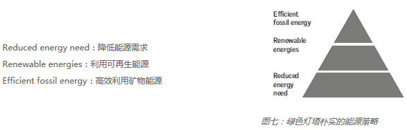 绿色灯塔的能源设计总体原则,一是降低能源需求,二是尽量使用可再生能源,三是高效使用化石能源。
