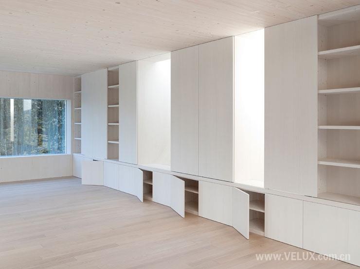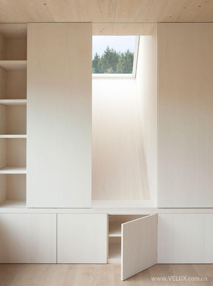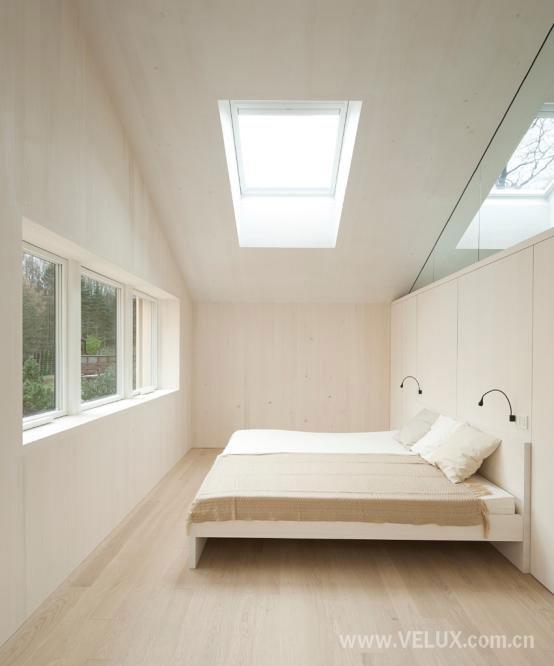 采光设计厨房和餐厅集中在“西南向”一个受保护的空间。天窗和立面窗位置经过了精心设计,既很大程度地以被动方式吸收太阳能,同时又带来了特有的远眺视野,进而突出了建筑个性,所有以上措施大大提高了自然采光效果。