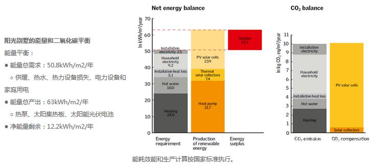 所有以上因素都表明,阳光别墅项目30年内产生的清洁能源(通过太阳能光伏电池和太阳能热系统),足以抵消项目建设及房屋使用过程中所排放二氧化碳,从而达到平衡。