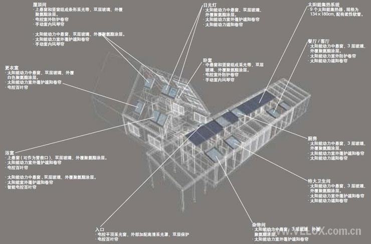 合理利用并有效控制日光,可以明显降低人工照明需求,冬季还可以获得有益的日光辐射,巧妙地利用日光是大幅降低建筑能源消耗的最佳手段之一。在LightActive House 的设计理念中,日光照明设计扮演着重要角色。项目初期设计阶段,利用先进的日光模拟分析软件,并融入了建筑设计动态过程,关注日光的优化利用,通过充足的日照和开阔的视野让住户充分体验昼夜交替和季节的变化。