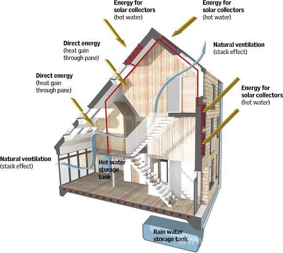 Rain water storage tank 雨水储存罐Natural ventilation (stack effect) 自然通风(烟筒效应)