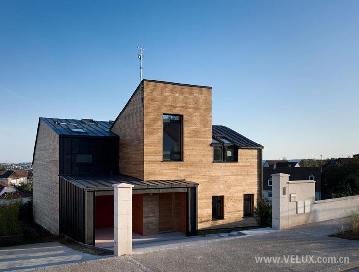 这栋刚刚完工的住宅靠近巴黎Verrieres-le-Buisson,是威卢克斯VELUX Model Home 2020 未来可持续建筑示范项目最后完工的项目。项目的宗旨是,建造一座正能量平衡(positive energy balance)和零环境破坏的建筑,它将居民的生活质量作为它解决环境问题的中心,是新一代主动得热住宅。