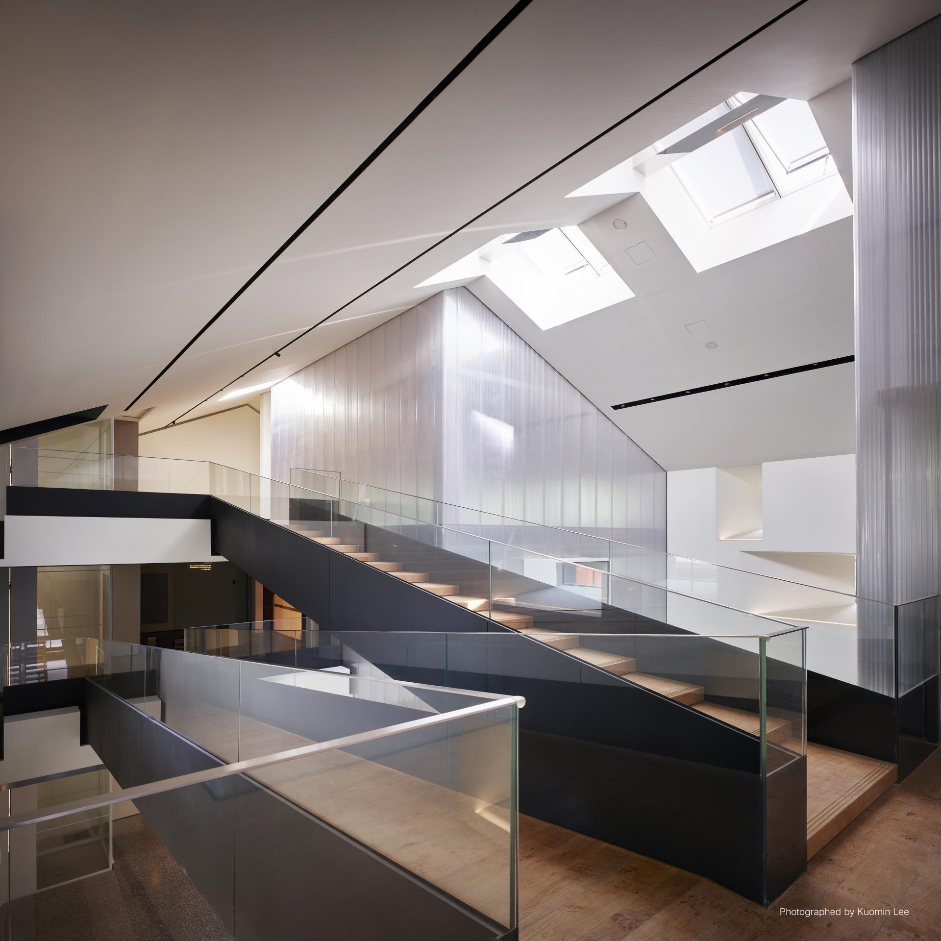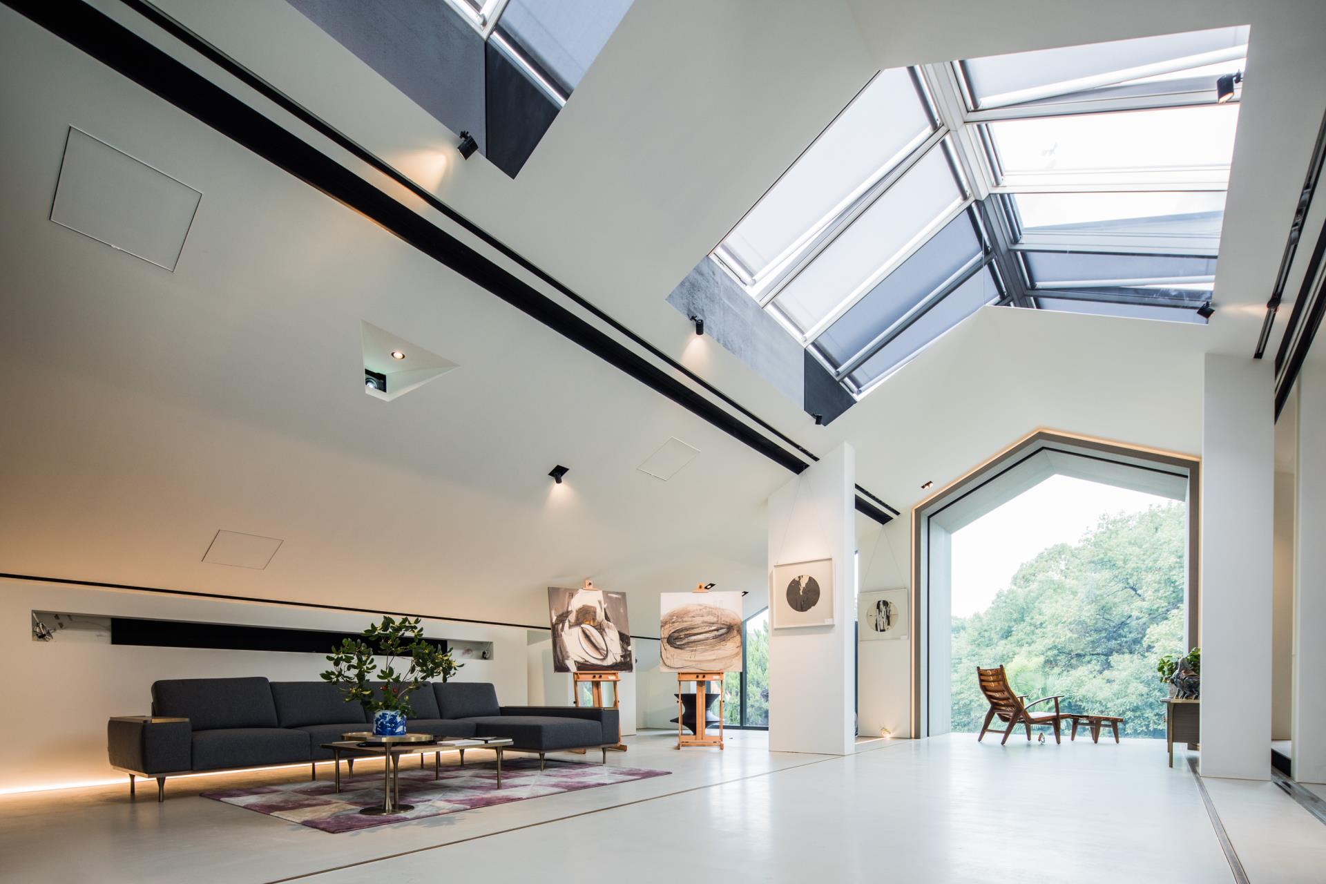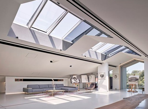 为了尽可能提升室内环境的舒适度,结合项⽬所在地的⽓候特征,我们在屋顶增加了整排可开启的电动VELUX天窗,加强了室内的⾃然采光和通风;并配合新风系统,在不适宜开窗通风的天⽓⾥尽可能提升室内空⽓质量。