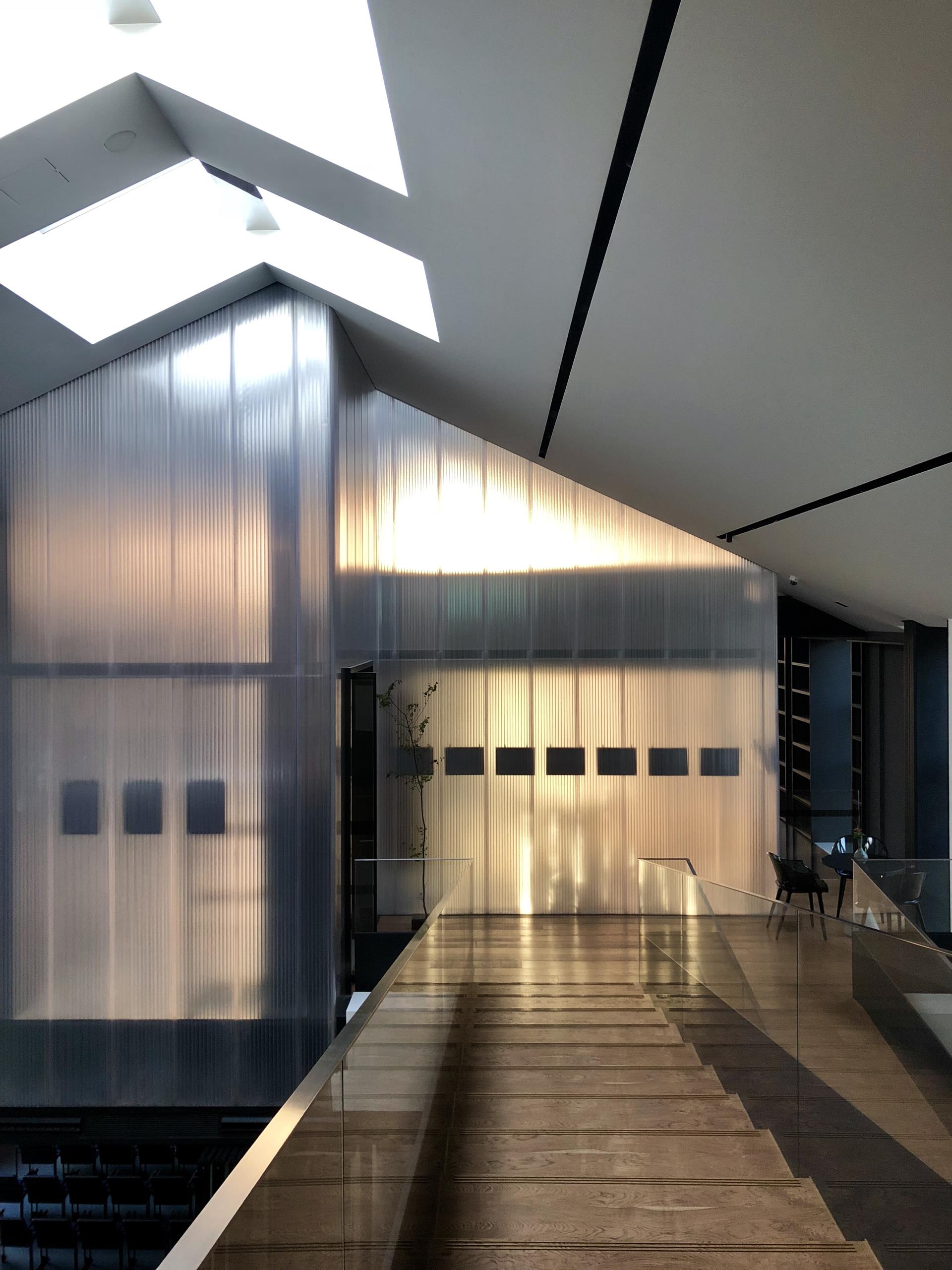 我们希望建筑显露出“通透性”和“开放性”,因此设定了东西向、南北向两条轴线,连接景观与光线。