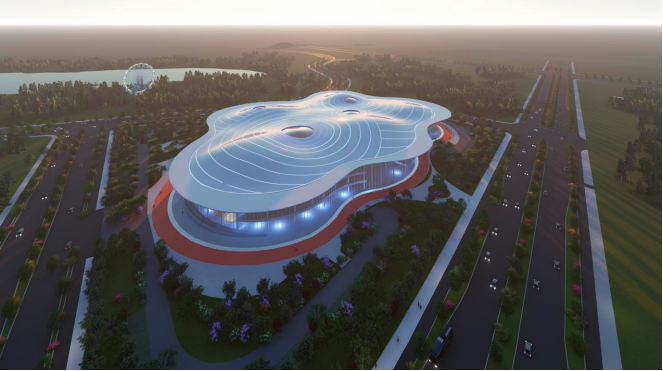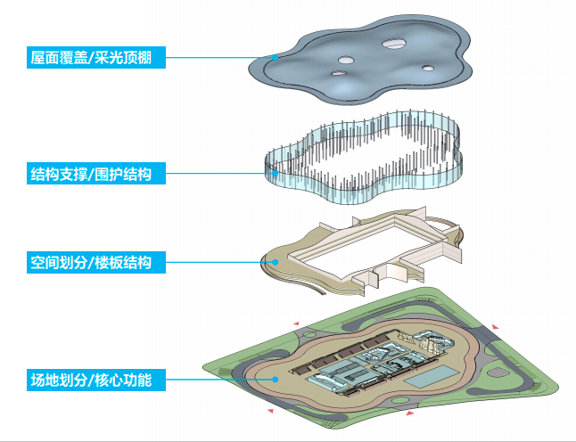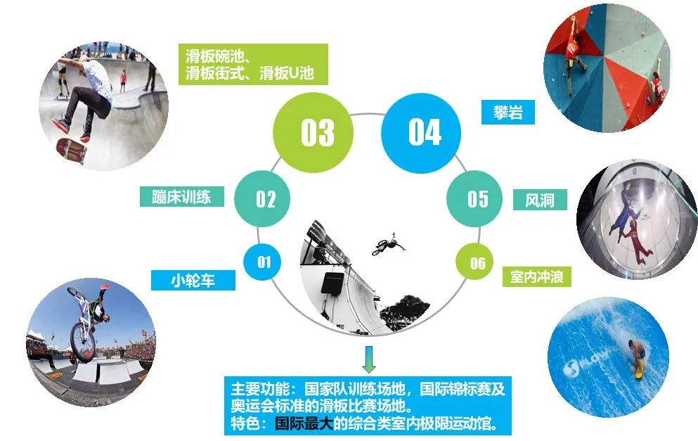 极限馆建筑设计是基于环境的整体思考,梅花造型的建筑形态,赋予了建筑飘逸的姿态,消解了建筑的体量,丰富了建筑的界面,与山体环境相融合,与极限运动的属性相匹配。