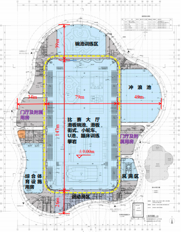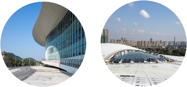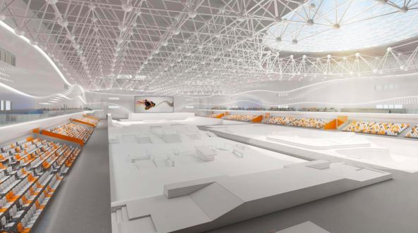 极限馆按照星级以上标准设计,绿建一星(2019),在整体节能环保的同时,注重运动员比赛及观众欣赏比赛时的舒适性,主要功能区充分应用了自然采光及自然通风的可持续设计理念,实现了健康舒适与节能环保间的动态平衡,突出体现了大型体育建筑以人为本的设计思想,也恰当地符合了极限运动崇尚自然的属性。