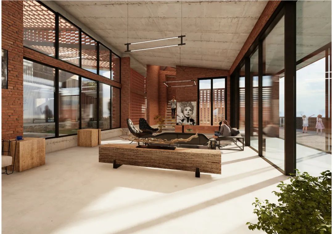 建筑在南面设计有大面积落地窗和阳光房,冬季,将南向落地窗全部开启,热空气通过阳光房进入室内,夏季,通过可调节遮阳措施,阻挡过量阳光进入。同时落地窗的设计也可提高室内自然采光效果;经模拟,建筑约85%的主要功能房间平均采光系数DF≥5.5%,采光均匀度在0.5~0.6之间。