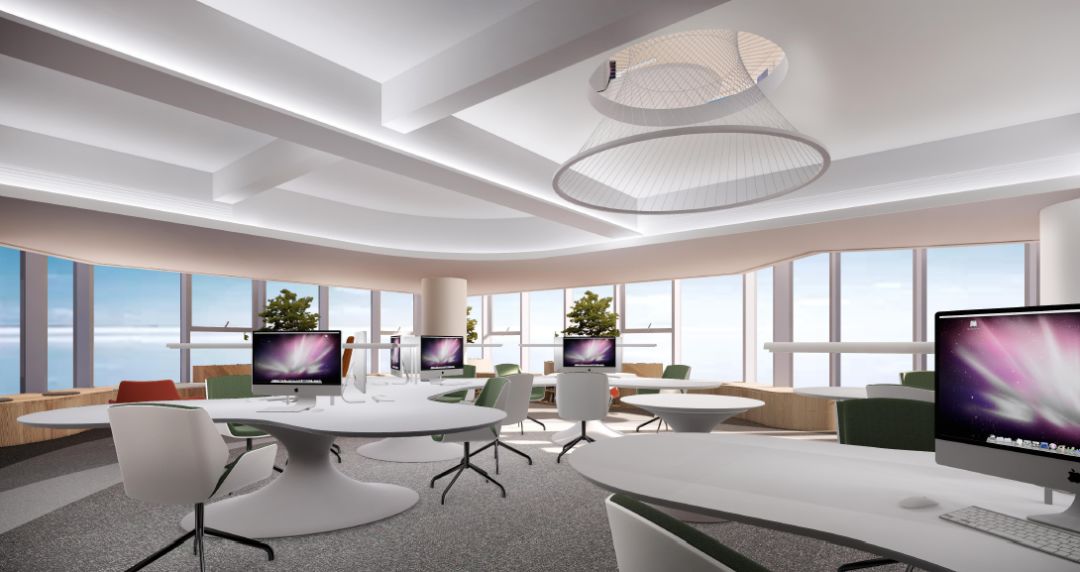 传统的办公模式将转变为开放灵活的共享式办公模式,公共空间(聊天室、休息室等)的数目将增加三倍以避免资源闲置,而智能化办公如云存储、无纸办公和综合管理系统,亦可减少因资源浪费而造成的碳排放。
