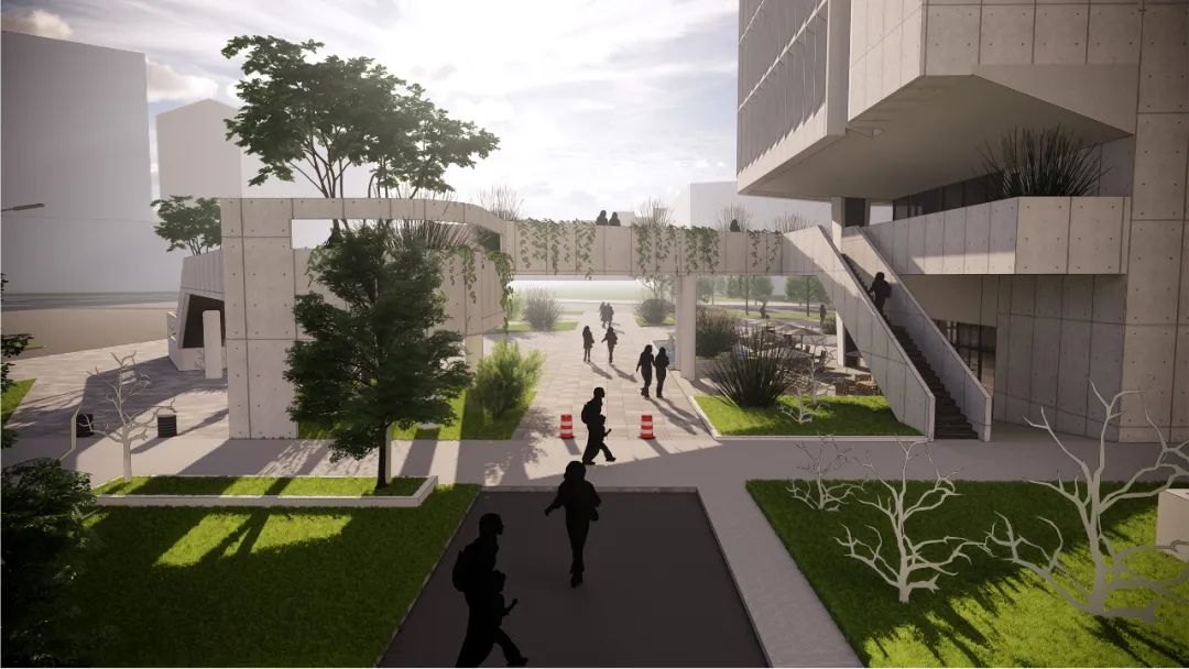 建筑与绿化紧密结合,种植大量树木绿植,营造良好的室外环境。设置屋顶花园,结合植被,打造休闲空间,提升建筑体验感。