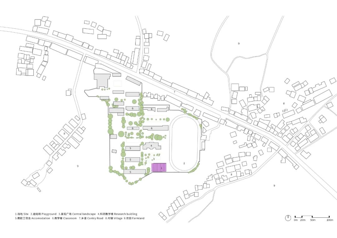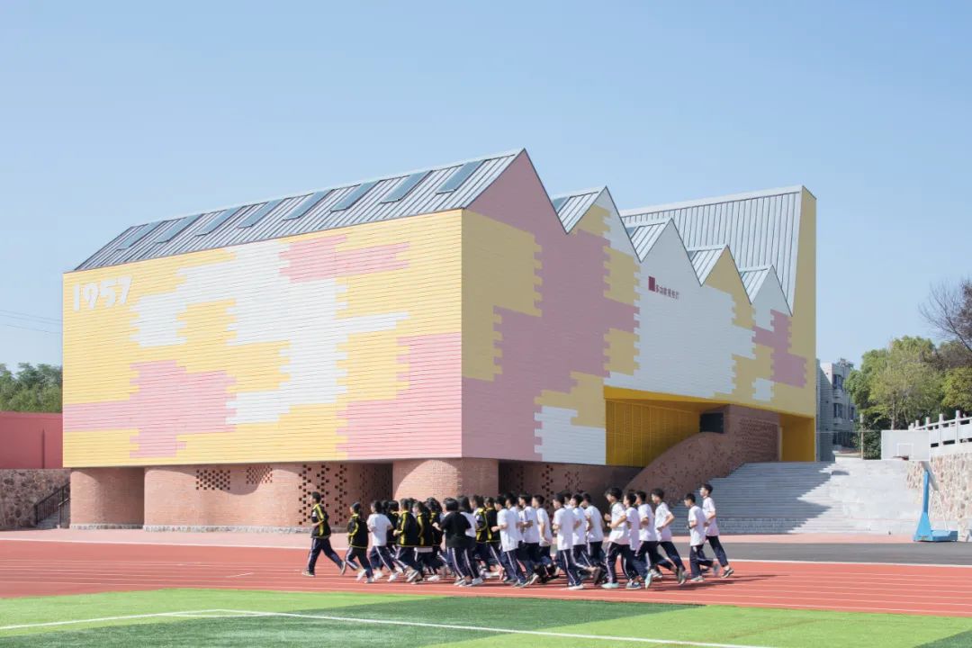 项目位于湖南省岳阳县的一所乡村中学内,由校友捐赠完成,一方面为学生们提供更好的体育活动空间,另一方面也希望借此建筑及周边环境的设计,为目前规整严肃的校园增添一些青春活力。