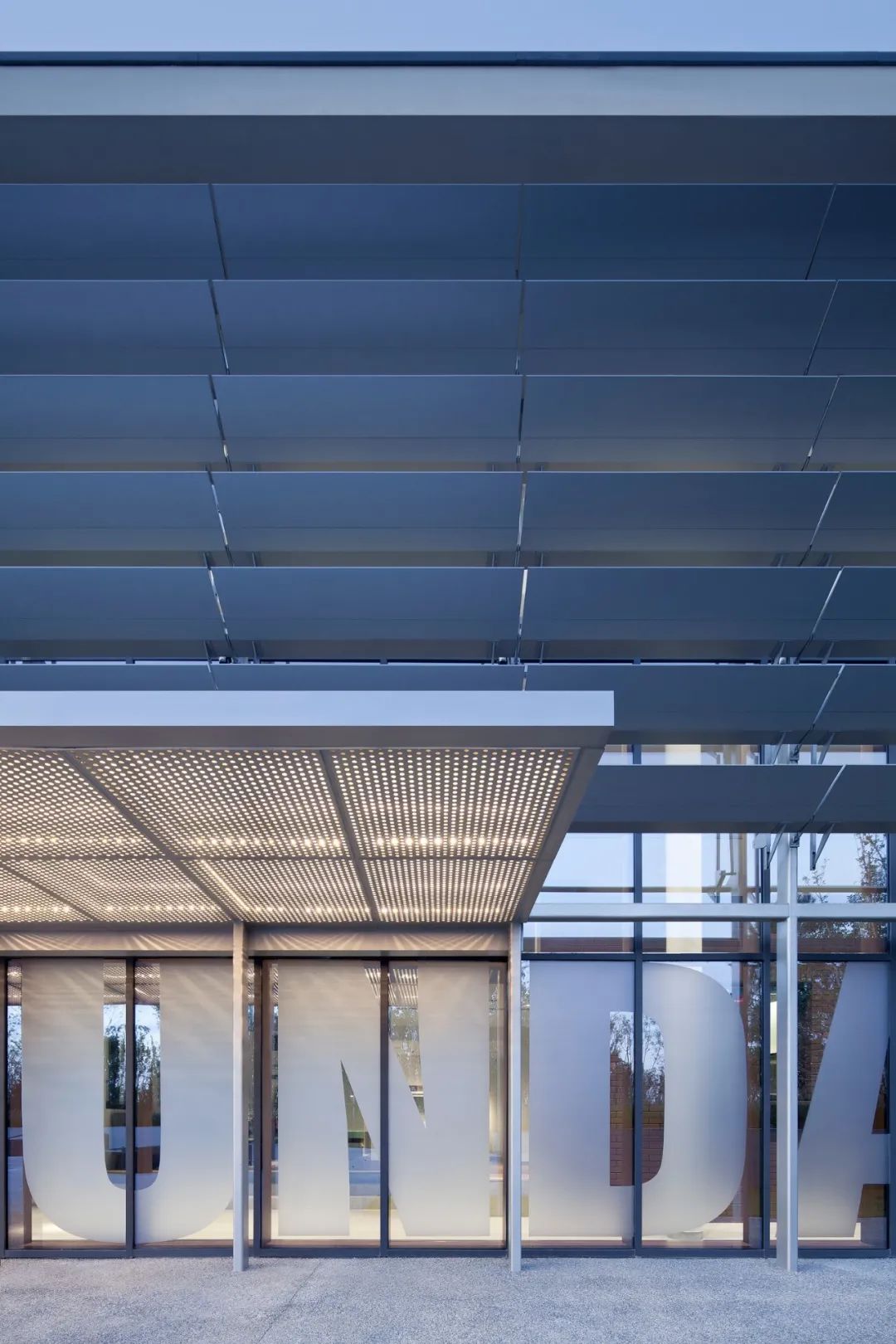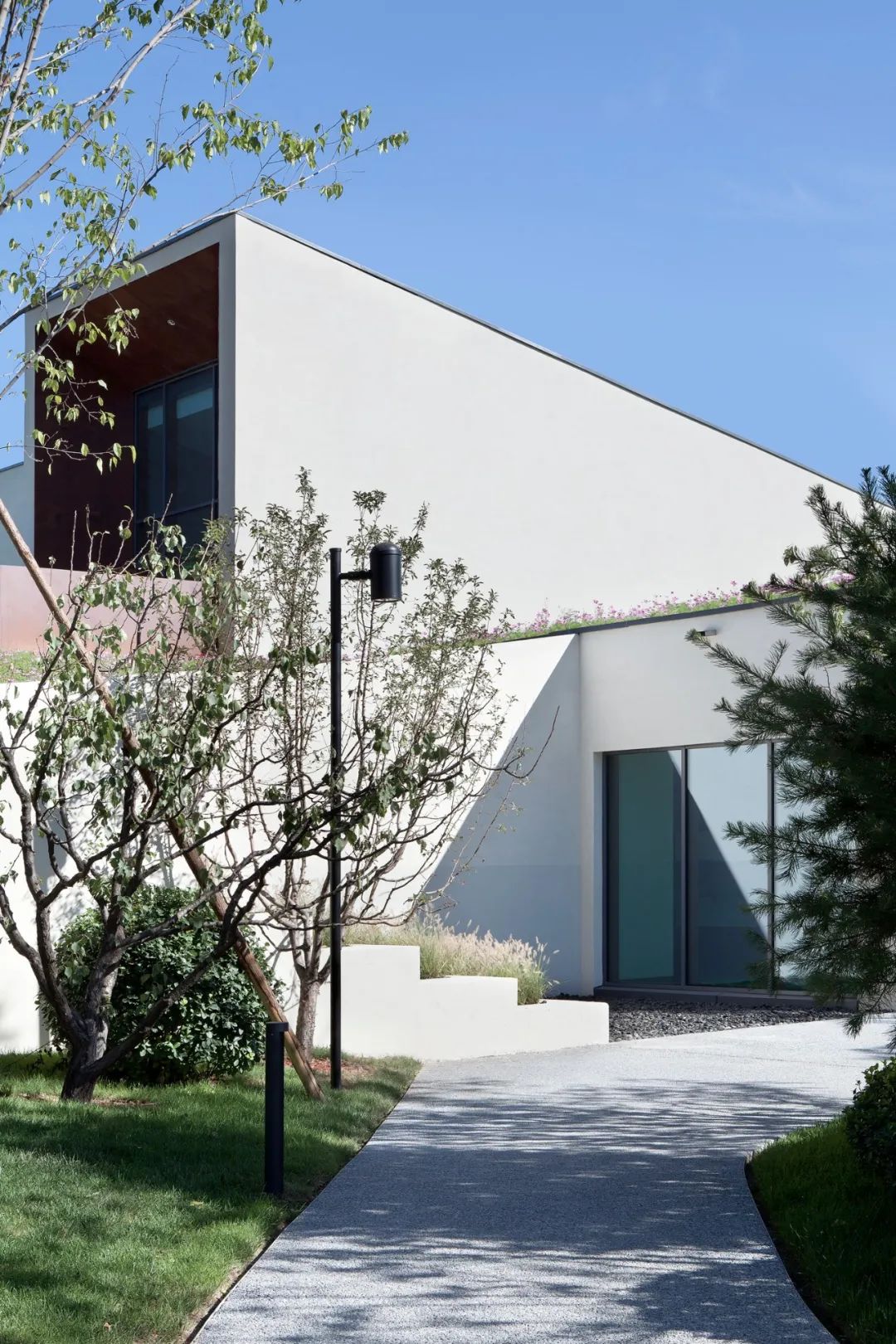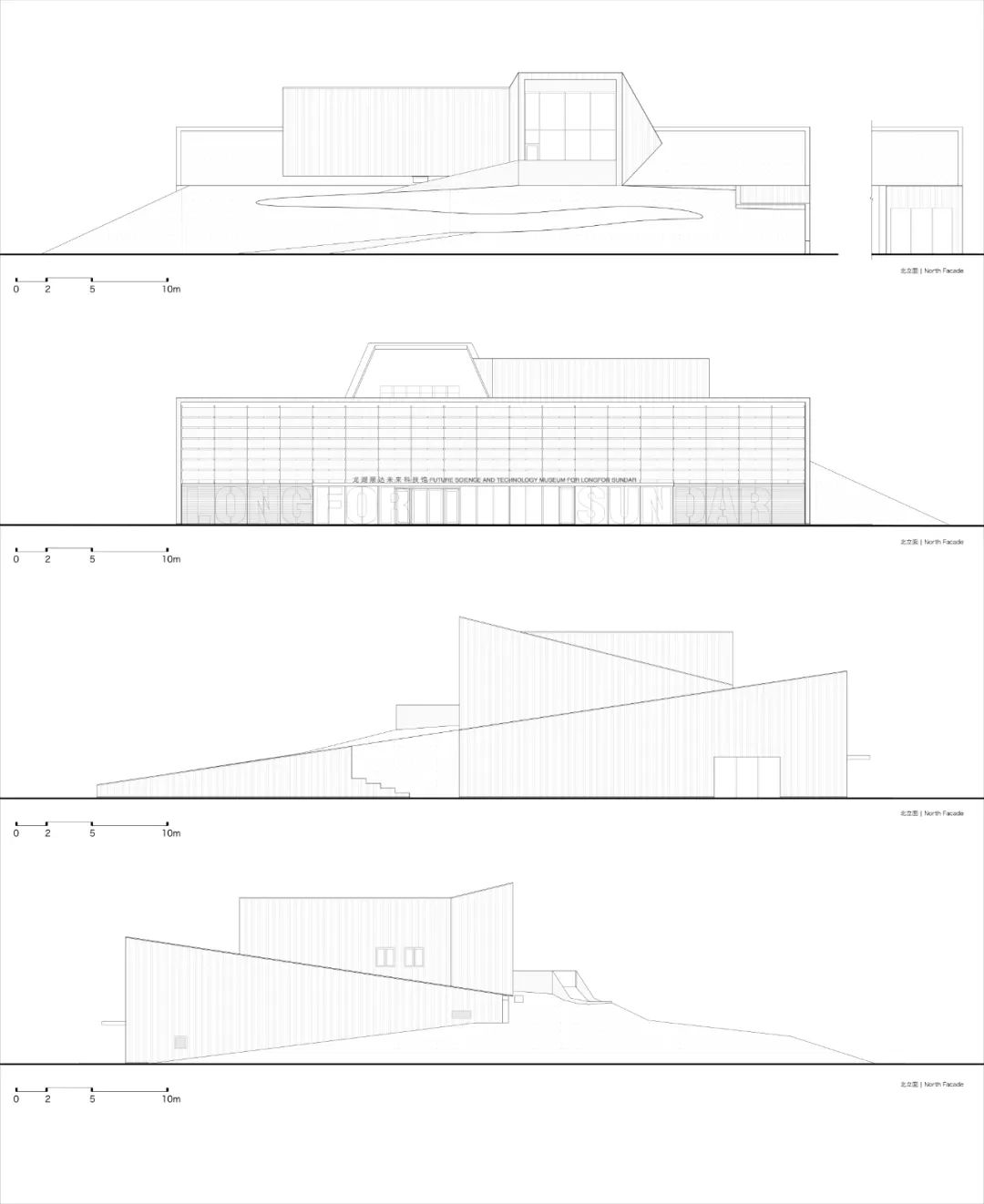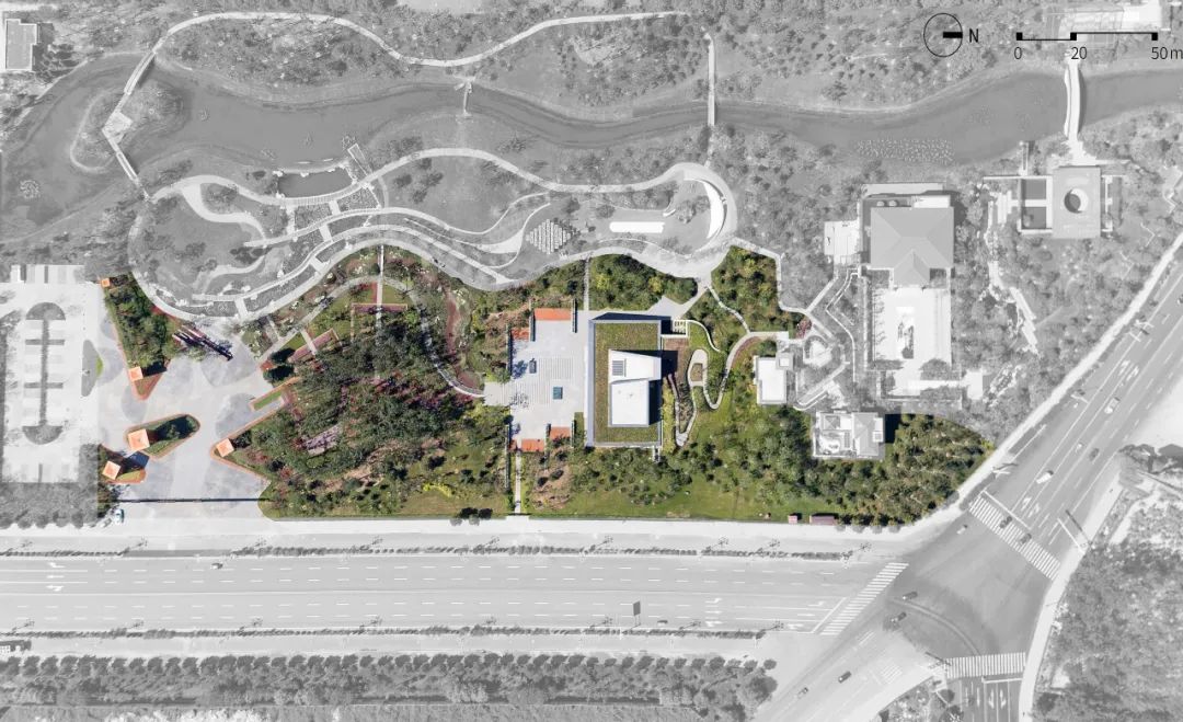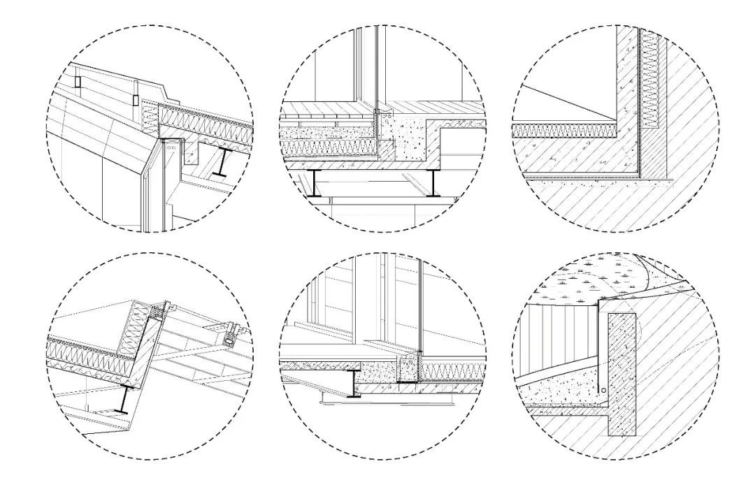 项目借助建筑景观一体化的设计,在避免造型冷桥的同时丰富室内外空间体验。整体南高北低,高空间是展厅,低空间是服务和设备间。