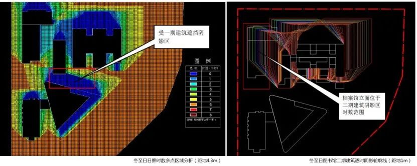 项目发展了建筑双层表皮的概念∶将阅览区立面设计为具有遮阳和漫射光线功能的遮阳表皮,从而减少图书馆的能耗,并创造更宜于阅读的光环境;采用的大进深布局,设计了三条南北向贯通的"冷巷"空间,有效解决了大进深空间的通风采光问题,穿堂风道带动室内的空气流动。此外,本项目在建筑屋面安装额定总功率为30k的太阳能光伏发电系统,为道路、景观和广场照明提供清洁能源。