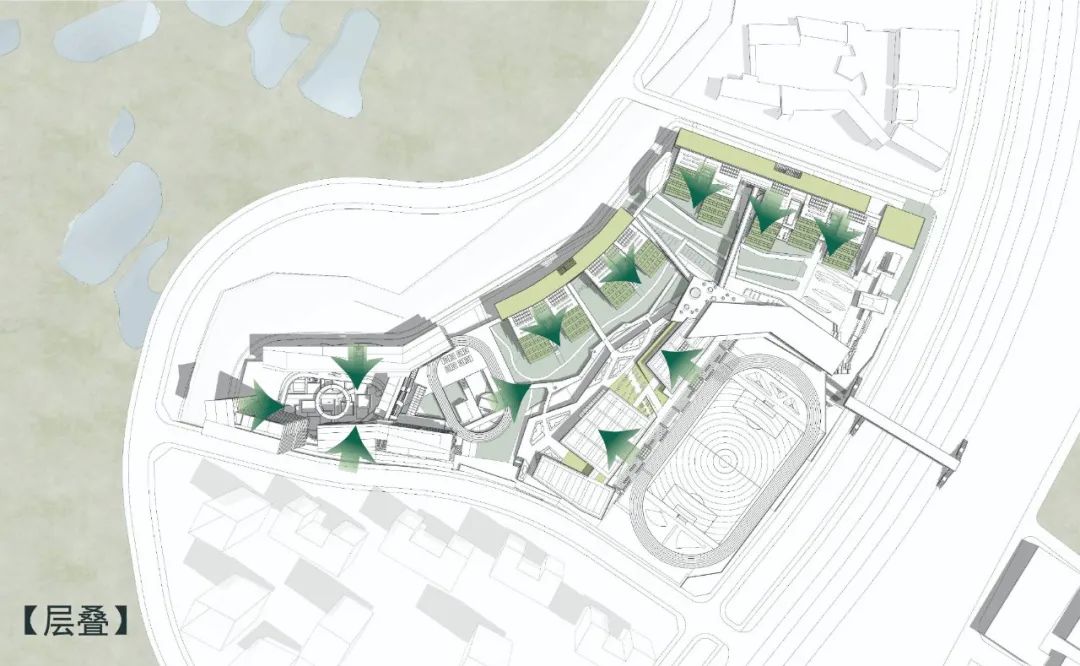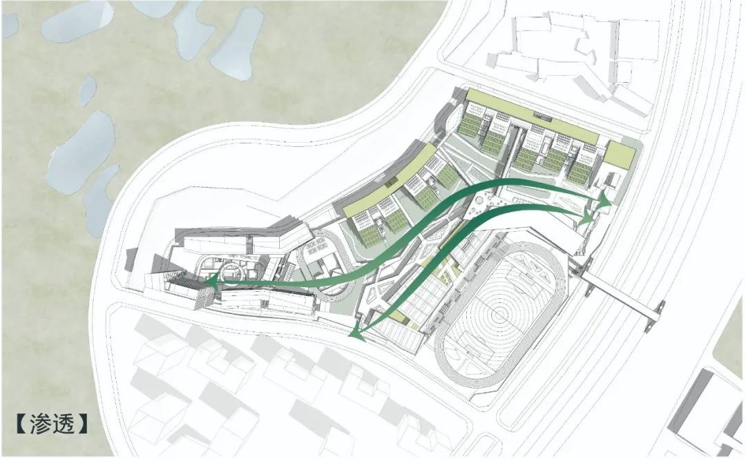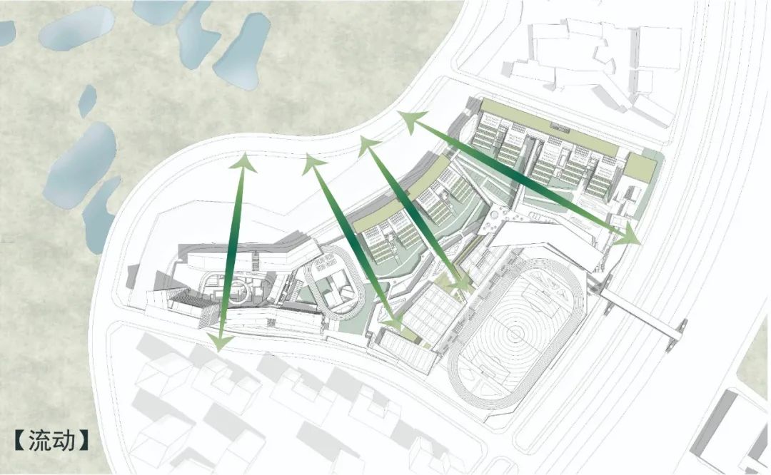 通过层叠、流动和渗透三个规划处理,我们获得了不同于以往人工化的校园公共空间,它不仅具备古人造园的“咫尺乾坤、曲折无尽”的空间意趣,也获得了 “虽为人做,宛若天成”的自然特性,这种更放松、更模糊、更混沌一体的校园空间不仅可更贴近孩子们的自由天性,也蕴含了更多发展可能和想象空间。我们希望未来校园具备“不设藩篱,恐拘风月,大开户牖,江山入怀”的姿态。