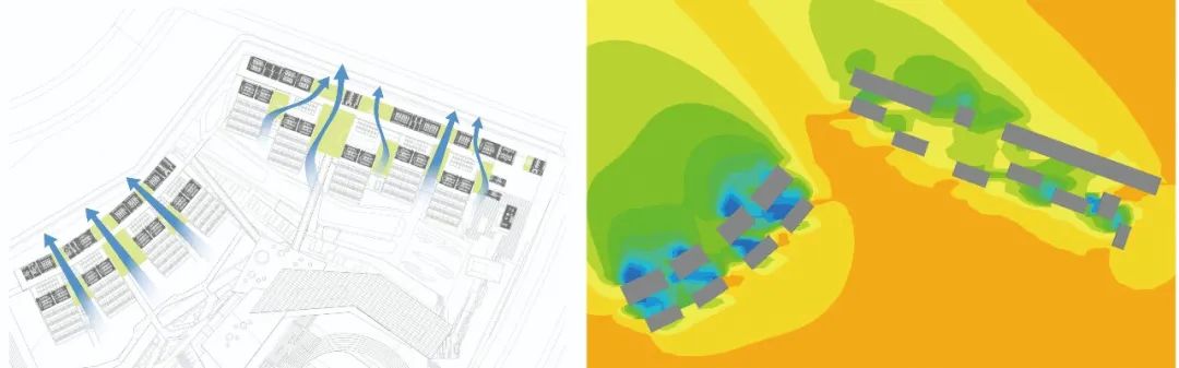 这个补充的空气来源于两个组团之间的空隙地带,已经在阴影中得到冷却。其次借用冷巷空间加强通风,实现节能降温。