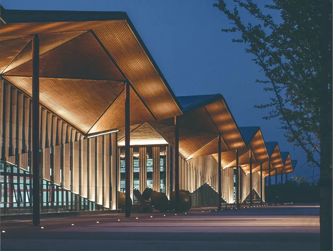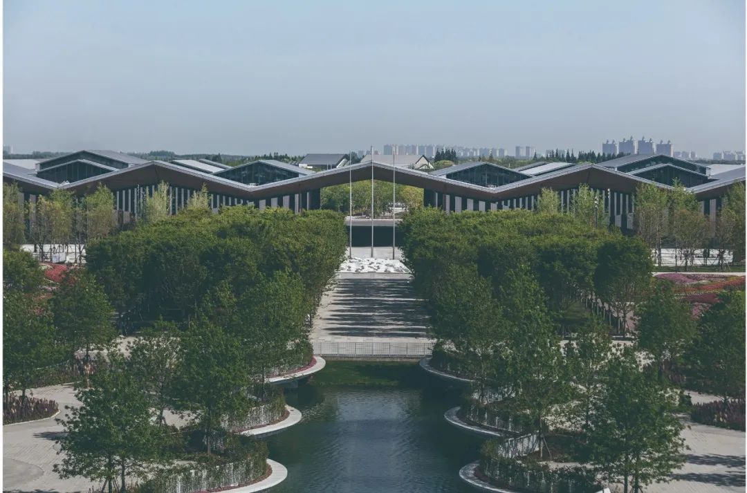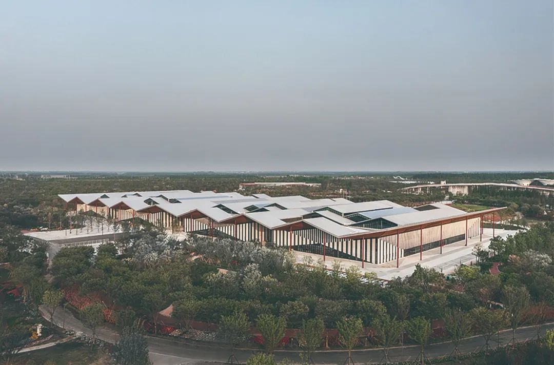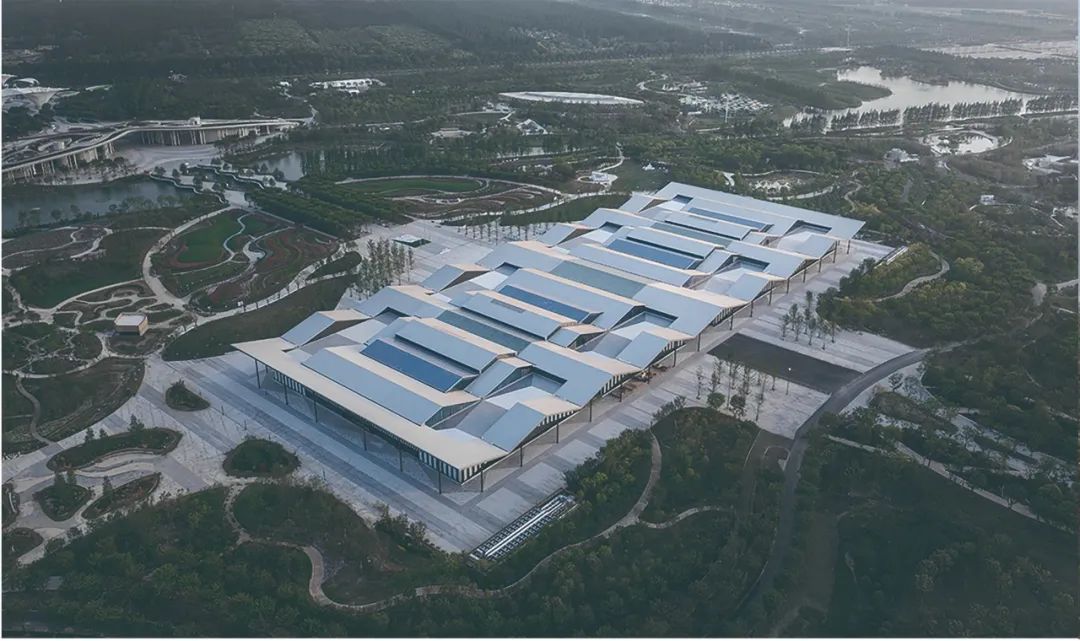 整体设计遵从中国艺术精髓的“写意”,创作出新的中国神韵,带给新时代民族文化认同,打造极具“新中国风”特色的第十届中国花卉博览会场馆建筑。