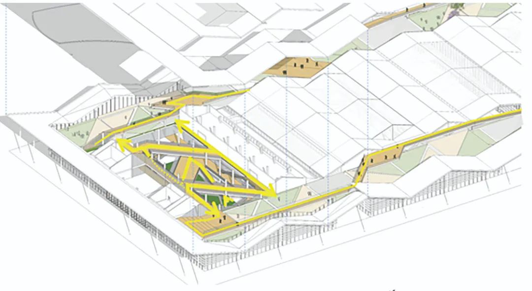 专家评语-刘艺:作为自然主题的花博会的永久主展馆,复兴馆设计之初就确立的生态方面的目标,并针对性地采取了系列技术策略。大跨度屋顶的起伏变化不仅呼应了传统建筑的形态文脉,更重要的是成为了承载多项绿色技术措施的“集成平台”,包括遮阳、通风、采光、光伏等。这种形态与生态性能的对应,也正是自然界生物所具备的特征,建筑由此具有了生命感。