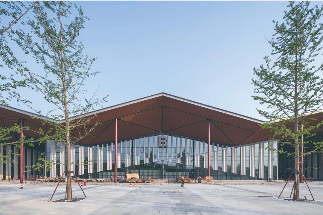本项目将中国传统折纸的概念融入设计中,打造“写意”式建筑;整体使用空间以折屋面覆盖形成大檐廊和南北通道,人群在其中自由穿梭;结构设计预留,满足后期将展馆改造成研发基地的需求;且主要功能房间设置室内空气质量监控系统,并与通风系统联动,保证室内控制质量良好。
