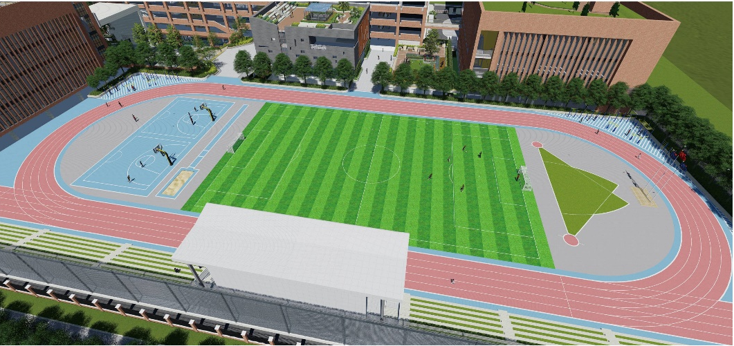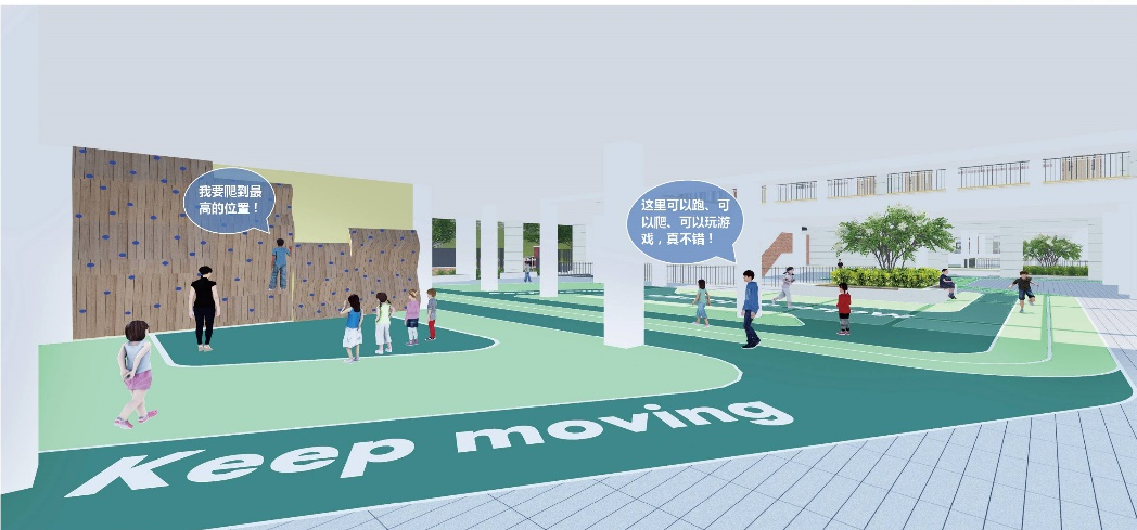 该区域考虑基本的运动场地功能,在 边角位设置器械活动场地,场地边缘 尽量增加绿化使空间更有活力,并尽 量满足基本功能需求。