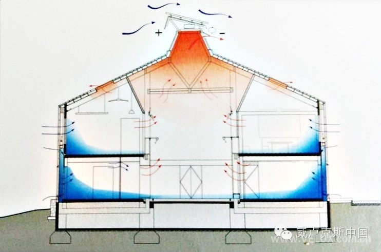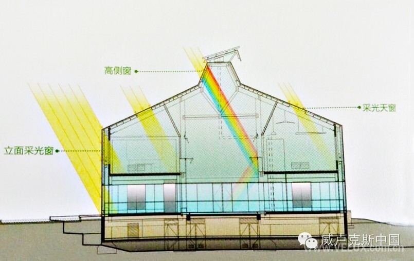 威卢克斯作为特种窗行业领导者,全球最大天窗供应商,为示范楼提供了建筑自然采光通风方案及产品技术支持。科技示范楼的主导性空间策略为充分利用自然通风采光的空间布局。办公及接待区的屋顶上设计威卢克斯智能电控窗,为室内带来充足日光照明的同时,减少了人工照明的能耗。天窗内侧匹配室内调光复合帘,灵活控制采光量。