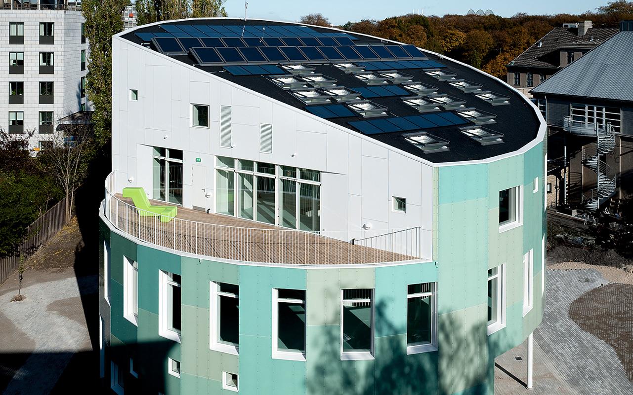 | “绿色灯塔”住宅是威卢克斯集团/VELUX 在2010年前所要建设的六个未来节能建筑项目之一。 它为未来建筑在二氧化碳减排方面指出了方向。 |