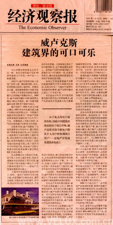 2006 年中国出台了一系列房地产宏观调控政策,被看作是威卢克斯发展的激励信号。比如禁止向未封顶的楼盘发放按揭贷款以及土地调控等措施,马丁表示,这些政策会像筛子一样只留念有资质的房地产开发商,而他们构成了威卢克斯客户的主体。