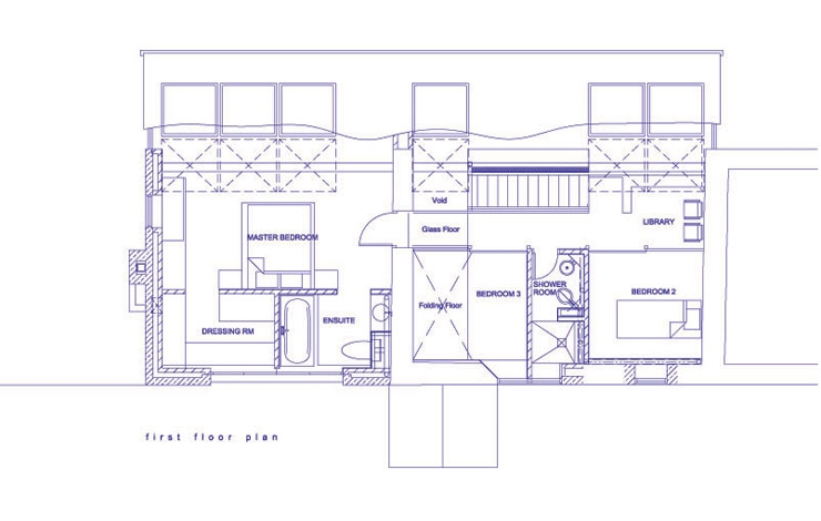 房子还有一个引人瞩目的特征,那就是利用强化玻璃建造的一座桥,连接二楼楼梯平台和主卧室。人们可以在一层透过玻璃桥仰望天空,也可以让更多的自然光进入房间。