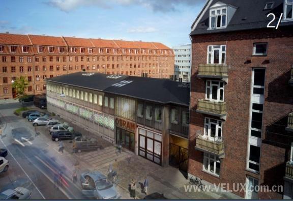 欧司朗文化中心是丹麦最早采用预制混凝土的建筑之一。它入口处的墙面具有明显的墙面支撑结构,充填了异型混凝土板和由极细小混凝土断面构成的“窗格”。由于现在是受保护建筑,因此,规划团队(T-Plus设计事务所和Wissenberg工程公司)甚至都没有考虑增加一个外部保温,而是在一层临街的墙内壁上安装了高至天花板的隔热玻璃,作为第二道内置防护层。其他墙面内侧采用了矿物棉作为隔热层。只有建筑物的后墙,因为拆除了一个原来用作仓库的附属建筑出现了“敞开式伤口”,才使用了外部隔热层,并在外面加了绿色和灰色嵌板。