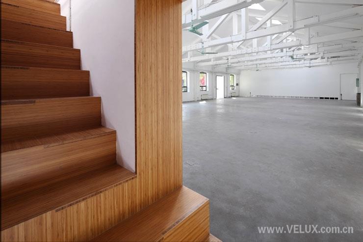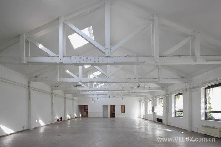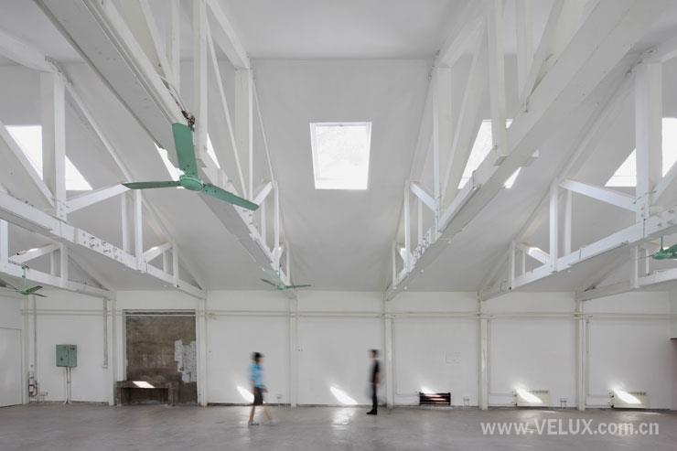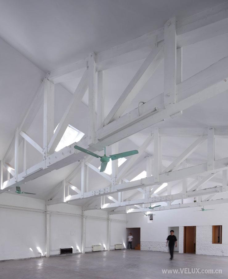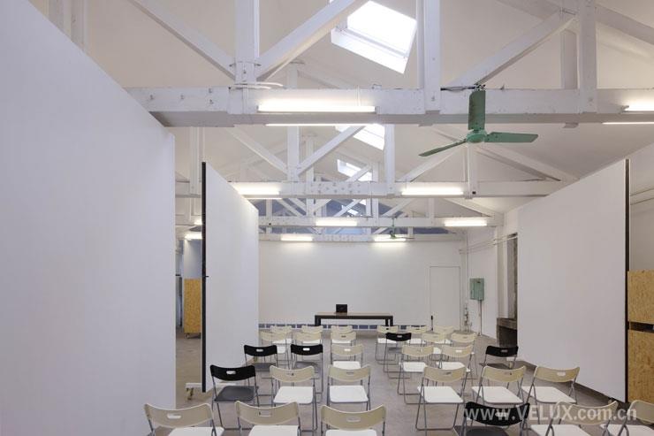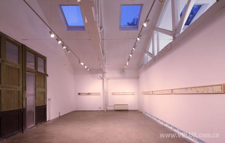 为弥补空间采光不足,朝北的坡屋顶新加了9个威卢克斯的电控天窗。北向的漫射光柔和地照亮画廊及开放的大空间。同时可开启的天窗在夏天把热空气拔出去,和南向的窗户一起给空间带来自然通风。