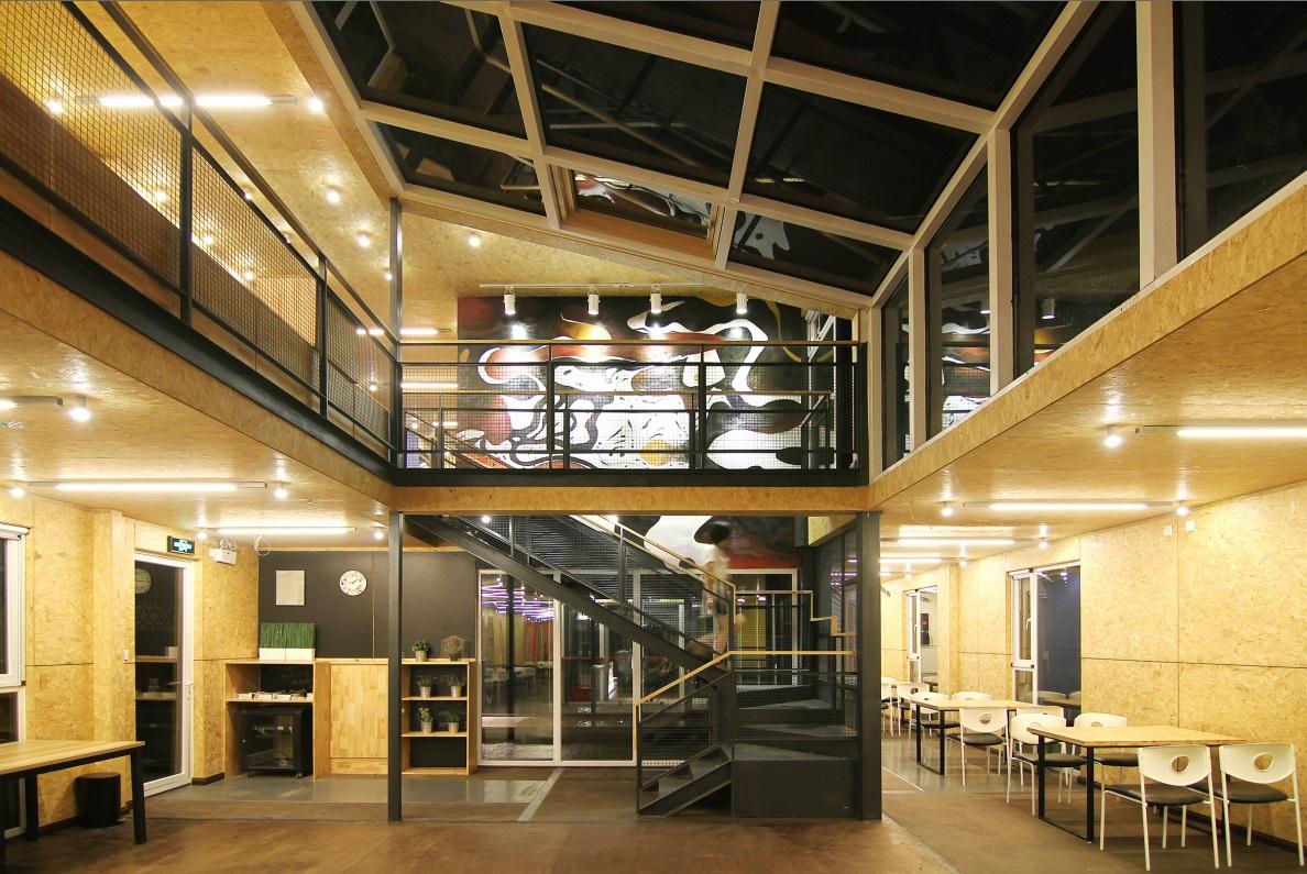 天津大学建筑学院内有一栋特殊的建筑-富力星·阅读体验舱 R&F Reading Cabin,通过对废旧集装箱的改造利用为学院师生营造独具特色的阅读空间、展示空间及休闲场所,并将作为教学与科研的实践平台,由各专业教师与学生对其进行持续的智能化改造和创造性更新。