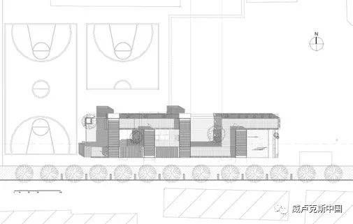 基地位于建筑学院西楼前场地的南部,临近围墙与树木,这一选址在留出活动场地的同时,使建筑可以利用南侧高大乔木形成夏季遮荫与南侧庭院。