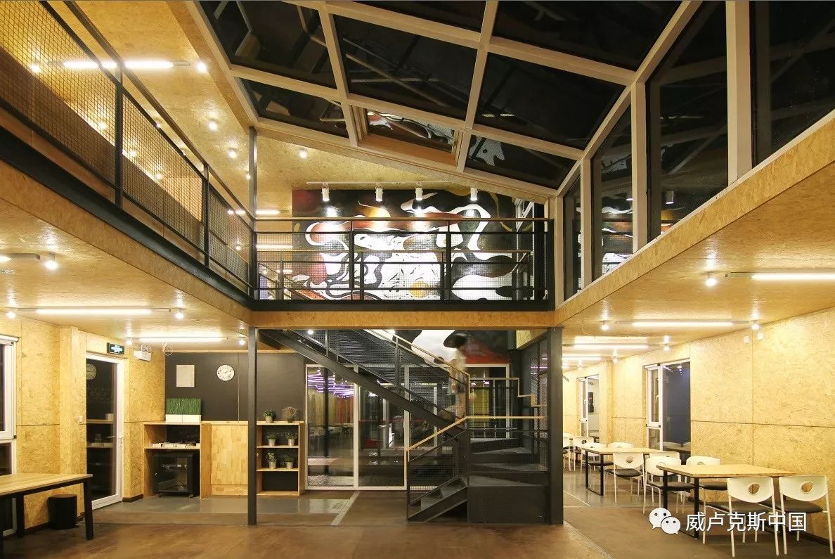 设计基于集装箱的特点,结合对环境与功能的考虑进行了理性的空间组合设计,集装箱作为建构单元具有明确的空间特色与结构属性,因此尽可能保留集装箱的原有构件尊重其“封闭狭长”的“舱体空间原型”。