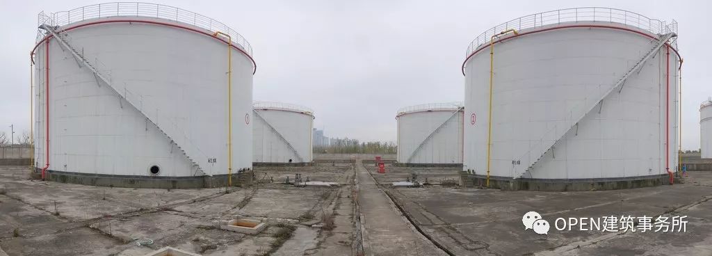 油罐艺术中心旧址是拥有百年历史的上海龙华机场。OPEN将废弃的五个机场储油罐改造为美术馆及多功能的展览、休闲及活动空间,并以一个“超级表面 (super-surface)”将五个独立的油罐连接起来。