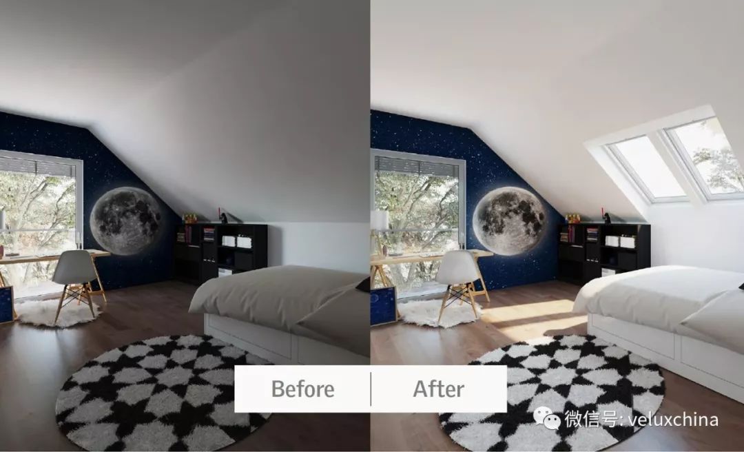 当地下室遇到威卢克斯,一切便发生了变化。看到微弱的光从远处小窗进来,投射到地面上,更多的感觉是阴暗和憋闷,然而灵机一动,开几个天窗,就在那一瞬间,阳光和新鲜空气涌入房间,室内与自然融为一体!成排的模块天窗映入眼帘,深灰色的外框与整个建筑相互辉映,可以实现智能控制的每一扇窗,让你随心所欲享受科技带来的快乐。