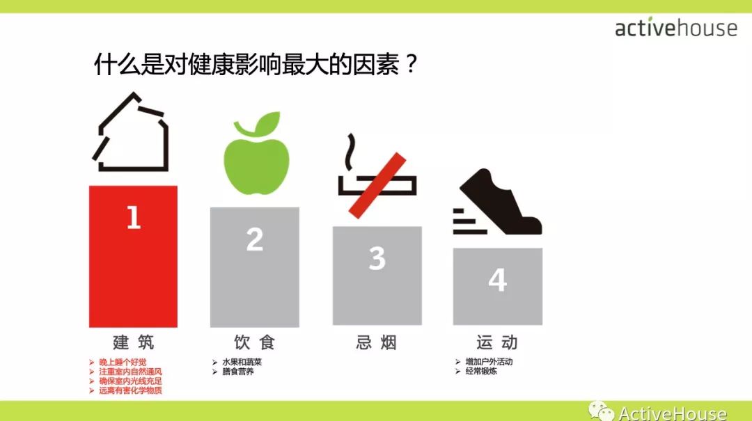 仲继寿先生强调绿色可持续建筑的重要性,谈到Active House发展的必要性,传统建筑标准转变为安全、健康与可持续,由此可见人们愈发关注在建筑内的健康舒适,建筑须充分回归以人为本,同时为长期可持续发展应关注环境保护与能源消耗。