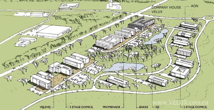 这一区域的住宅楼和商业社区都在开发区总体规划基础上进行了精心设计,所有建筑单元都和谐融合在一起,此外,相关部门还编制了建筑材料使用手册,以确保建筑整体在长期施工过程中的系统性和连续性。阿科迪玛建筑设计公司(Arkitema)是这个项目的设计公司,它是丹麦最大的建筑设计事务所之一,具有丰富的办公楼设计、施工经验。该事务所一直特别重视开放式工作环境,而这种理念在威卢克斯办公楼中也同样得到了充分体现,并且在整个项目中得以完善发展。