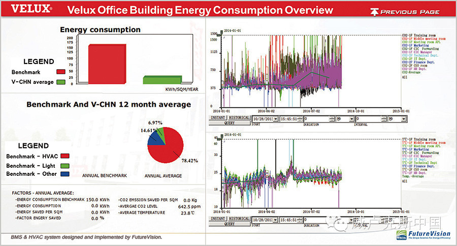 威卢克斯中国办公楼是中国第一个“Active House”实践案例。由中国建筑科学研究院对建筑外墙、屋面、外窗、建筑整体气密性、室内环境及空调通风系统的性能测试数据表明,整个大楼的实际年电耗水平为33kwh/㎡/a,为中国此类建筑平均能耗的五分之一。