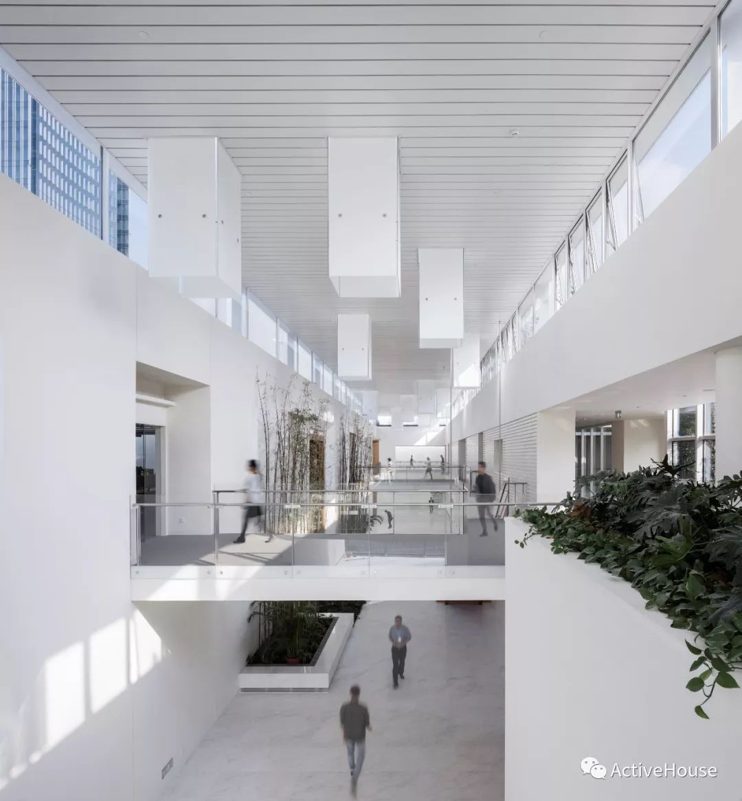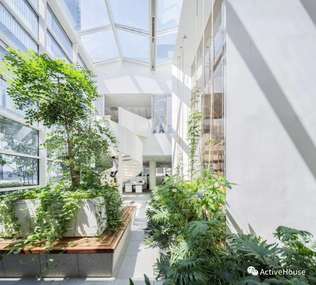 室内绿化:塔楼办公空间采用每3层设置一个大型空中共享花园,裙楼大堂、中庭和各办公空间同样遍布绿色。