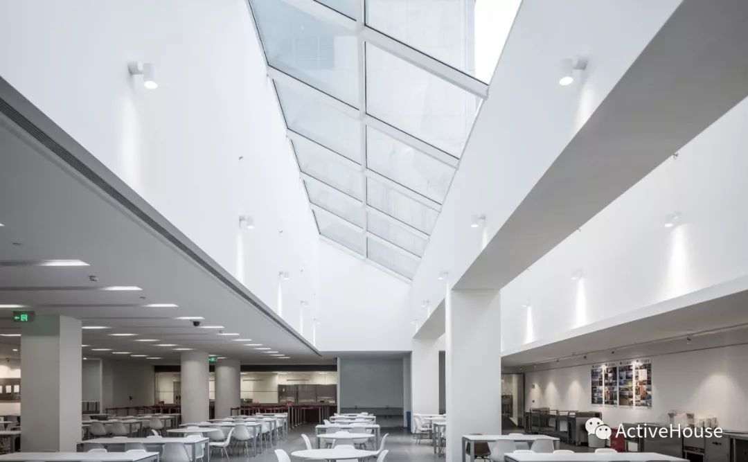 员工食堂和地下健身房的大面积采光天窗大幅改善了地下空间的采光效果,南侧的下沉广场,既是有效的交流平台,又为地下空间带来了日照与景观。