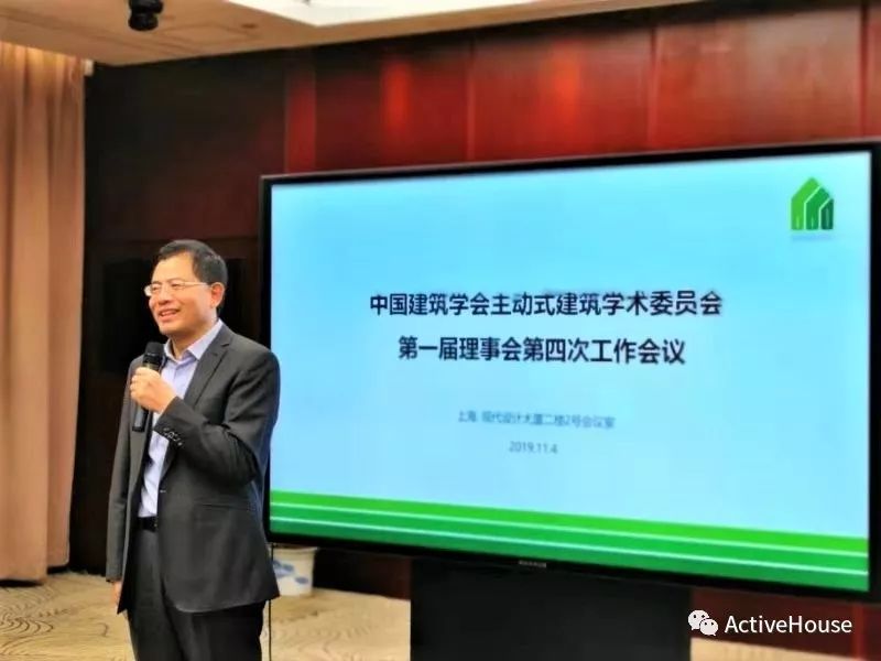 2019年11月4日,中国建筑学会主动式建筑学术委员会在上海召开中国建筑学会主动式建筑学术委员会第一届理事会第四次工作会议,本次会议旨在提高对健康建筑及建筑品质的重视,围绕Active House“普适 朴实 普世”的核心理念,进行国际、国内发展状况的分析,以集合更多建筑思想与技术,促进建筑业为人类带来更多福祉;同时进一步了解主动式建筑学术委员会一年来的工作情况,并进行有关人员的调整增补。