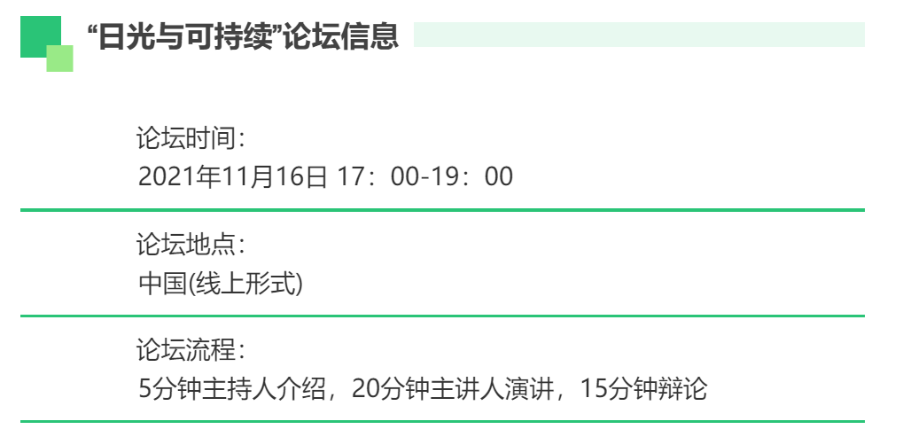 这是一项开创性的多学科计划,通过更好的建筑设计去重拾人与自然的连接,是一个为期3天的国际学术论坛,论坛设两大主题,一是建筑的方向(building compass)二是日光研讨。