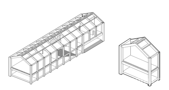 间舍的设计概念来自于中国地方建筑文化中的“间”。建筑所在的地方文化中,有一种常用的建筑空间基数单位—“间”,一“间”代表一个宽度大约3.3米到3.6米的空间尺度,而这个“间”不仅代表一个空间使用的基数单位,也与地方传统建造形式强烈的联系在一起。因此,在设计开展之前,业主已经确定建造11间作为给定要求。这样在开展设计之初,一个坡屋顶的,11“间”的模数,同在一个屋檐下的大屋成为了给定的条件。