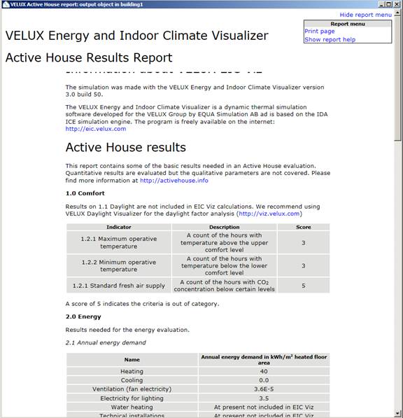 上图:EIC输出的主动式建筑评估分数及其具体结果