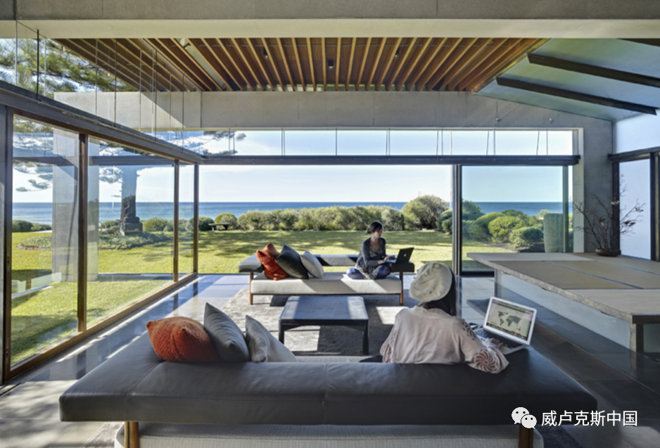 举个例子,我正在为我家建造房子,房子位于悉尼最美风景地之一。起居空间在底层,看不到风景。人们对此倍感困惑,但如果将大部分的起居空间抬高到风景水平线上,我们便也需要经受炎热和恶劣海岸气候。这样一来,我们总是得把窗户关紧,把自己和外界隔离开来,这样的生活谈何享受!而在底层,生活将变得极为舒适,即便是在夏天,不论什么时候,我们都可以上楼去看风景。